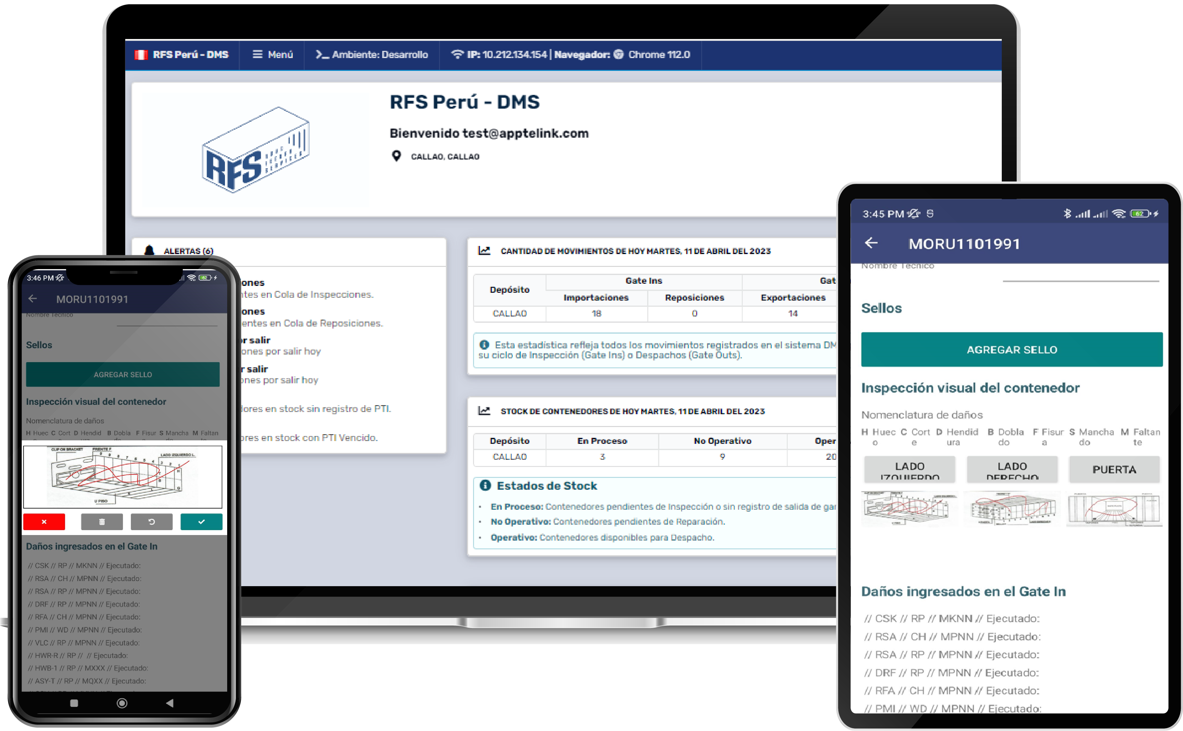 Registro de servicios para contenedores secos y refrigerados (PTI, lavados, cortinas).