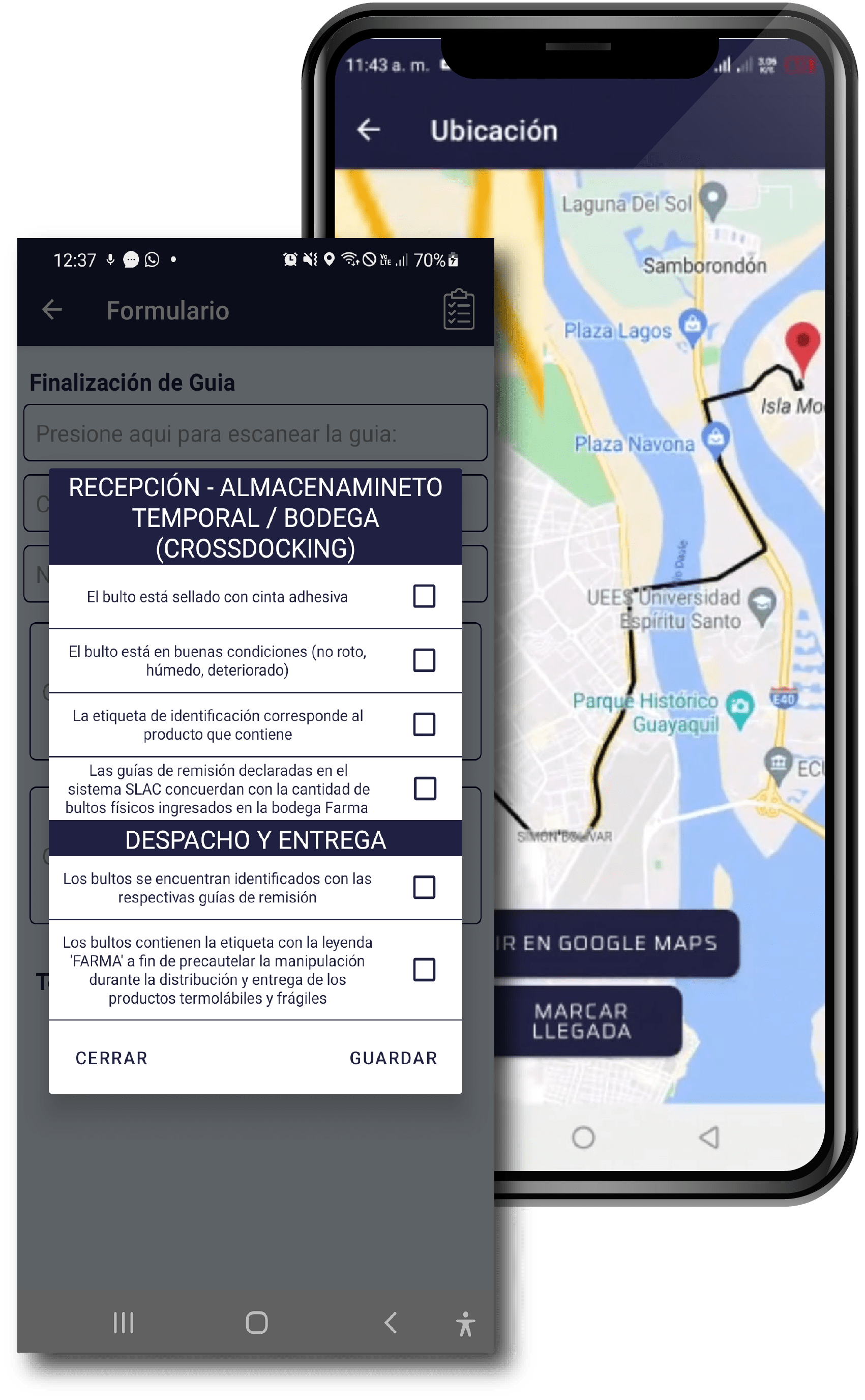 App móvil para trazabilidad de ruta, cross docking, courier y entregas.